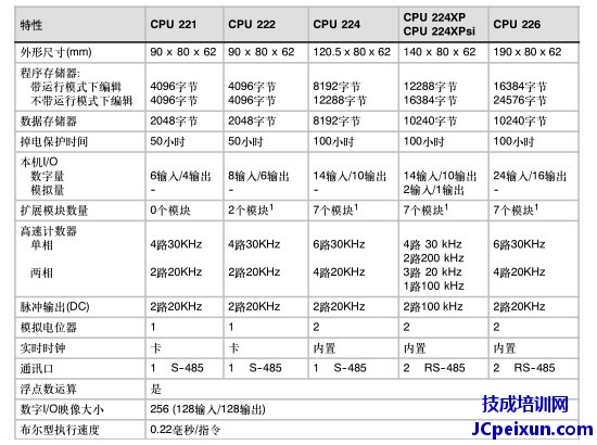 要知道不同型号其本机I/O的数量,包括数字量和模拟量的;要知道不同型号其程序存储区和数据存储区的参数要求;还要注意各型号CPU对扩展模块数量的要求,像CPU221是不能扩展模块的,CPU222只能扩展2个模块,而CPU224/CPU224XP/CPU226则多可以扩展7个模块。
